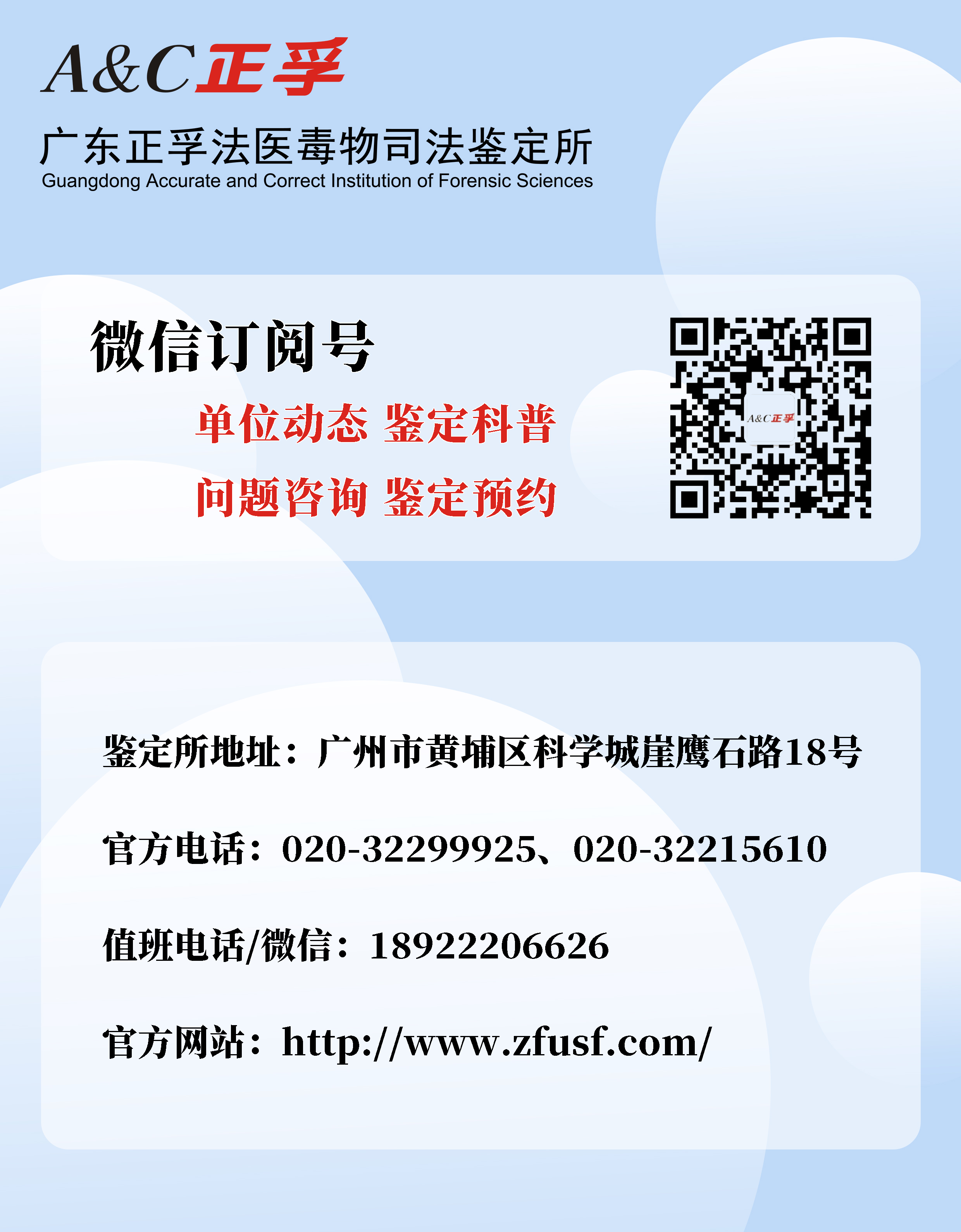 广东正孚法医毒物司法鉴定所在2012年获广东省司法厅核准成立,2016年通过中国合格评定国家认可委员会(CNAS)司法鉴定认可,开展法医毒物鉴定和法医物证鉴定(个体识别,三联体亲子关系鉴定,二联体亲子关系鉴定,祖孙关系鉴定、生物学全同胞关系鉴定)鉴定业务。