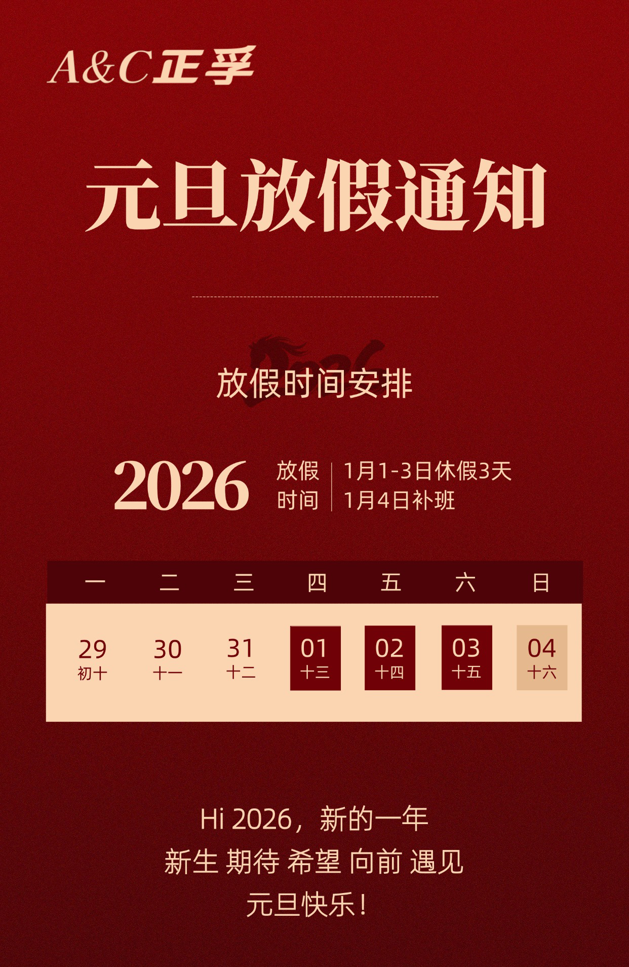 根据国家相关规定,正孚检测2026年元旦放假安排如下: