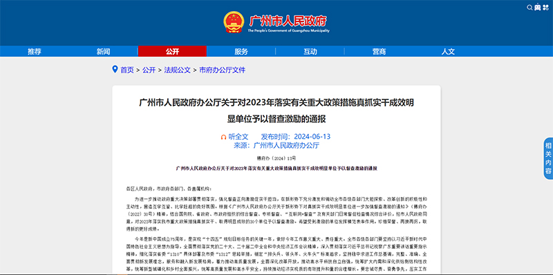 6月13日,广州市人民政府发布《2023年落实有关重大政策措施真抓实干成效明显的单位名单及激励措施》。广东正孚法医毒物司法鉴定所落实广州市重大政策措施,真抓实干取得明显成效,获得“推进法治政府建设、服务保障全市经济社会发展作出突出贡献的单位”。