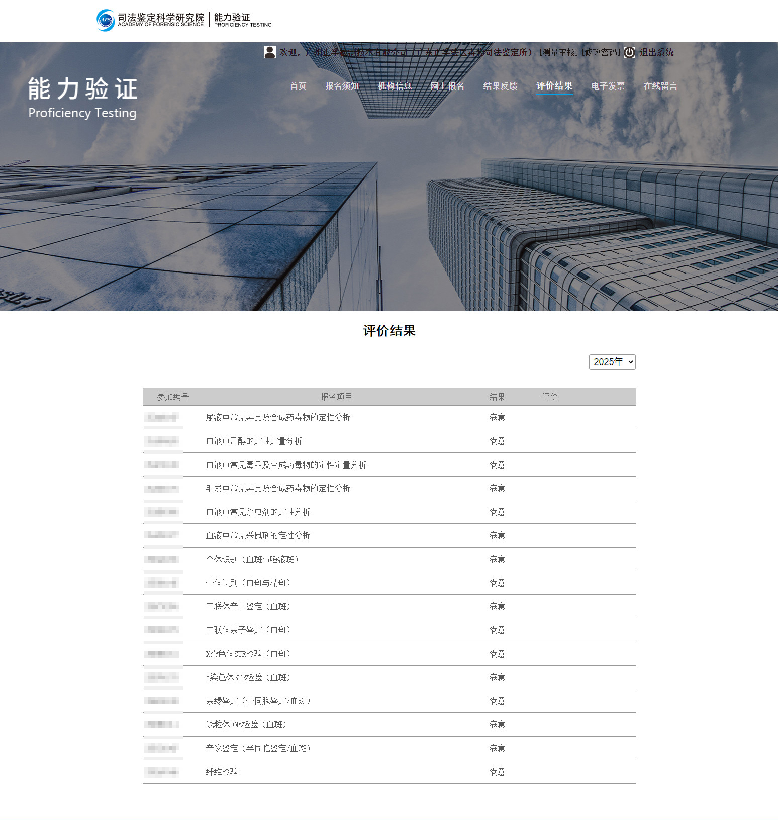 近日,司法鉴定科学技术研究院官网公布了2025年度全国司法鉴定能力验证活动结果。