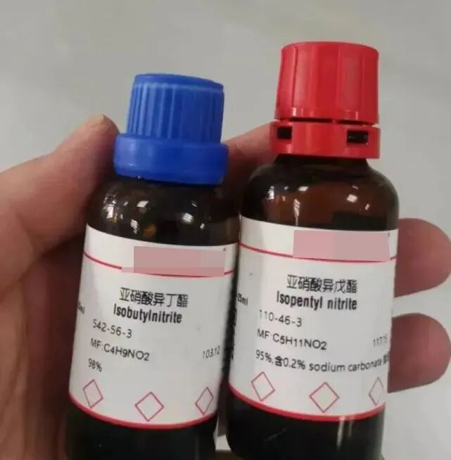 Rush中主要成分是亚硝酸酯类,有较强的挥发性。据文献报道,目前性行为中精神类药物使用最多的是Rush,比例高达92%。Rush属精神活性类物质,常经鼻吸入,由多种挥发性亚硝酸盐组成,主要包含异丙基亚硝酸盐(2-propyl nitrite)、异亚硝酸盐(2-methylpropyl nitrite)以及较为罕见的亚硝酸丁酯(isoamyl nitrite)和亚硝酸异戊酯(isopentyl nitrite)。亚硝酸盐对于从事工业,食品,医学,药学的人来说都不陌生,我们经常食用的腌制品中基本都含有亚硝酸盐,它可以对食物起到提鲜,增色的作用。而在药品中,常作为缓解心绞痛的速效药使用。
